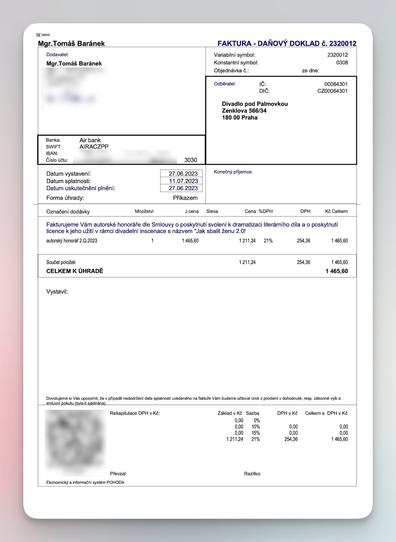 Pokus číslo 2: rozborka české faktury