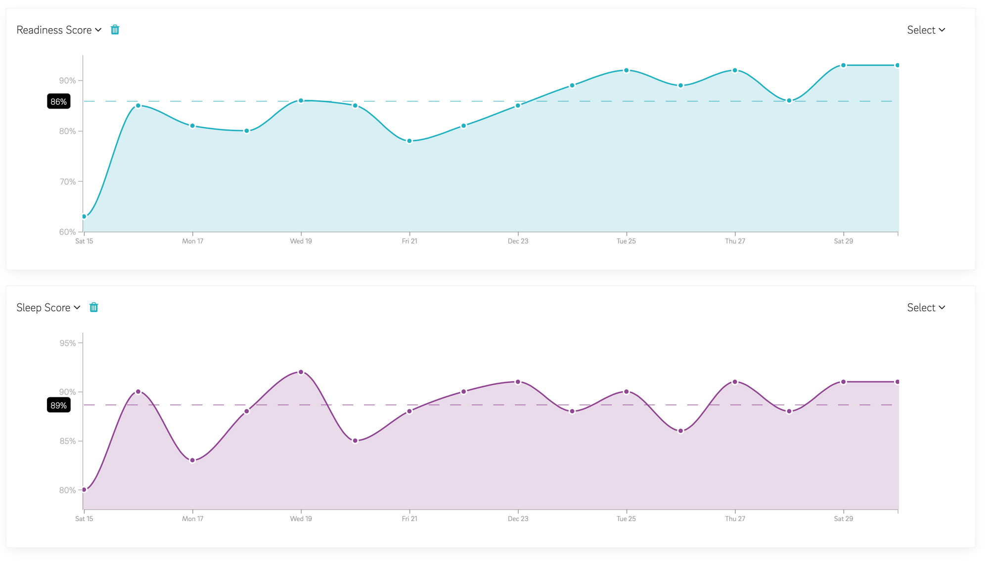 - spánek monitoruju pomocí Oury; nutno říct, že lepší screening spánku jsem zatím něměl možnost používat; mnozí se ptají „proč je to tak dobré?“ a „v čem je to lepší než FitBit či Beddit“ apod. Mám dvě odpovědi: 1. Oura je hi-tech, vše ostatní je low-tech: špičkově a přesně měří, co dokáže změřit (mj. i tělesnou teplotu), špičkově vyhodnocuje, funguje bezchybně (ala Apple) a výborně vypadá. 2. Oura má naprosto skvělý koncept: na spánek a další měřené biologické hodnoty (včetně pohybové aktivity) se nedívá jen jako na jakousi veličinu či graf vytržený z kontextu, ale dlouhodobě vyhodnocuje vaše trendy v mnoha rovinách; z více faktorů se pak „učí“ váš životní styl a dokáže pak vyhodnotit a předpovědět skóre vaší denní „připravenosti" (k výkonu fyzickému i mentálnímu); je to skutečně šokující, jak dobře Oura dokáže už ráno odpovědět na otázku, jak se během dne budete cítit, a zda má smysl se pouštět například do kreativní činnosti či náročného tréninku, či vzít váš den zlehka a raději odpočívat; toto – pokud vím – neumí nikdo jiný, jen Oura – a Oura to navíc umí opravdu dobře; (PS: tím pádem považuji i námitku ohledně vyšší ceny za irelevantní; od chuťově univerzálního meníčka pro každého – typu FitBit – nemůžete čekat vybraný a hluboký kulinářský zážitek špičkového restaurantu, kde vám uvaří kuchař top kvality)