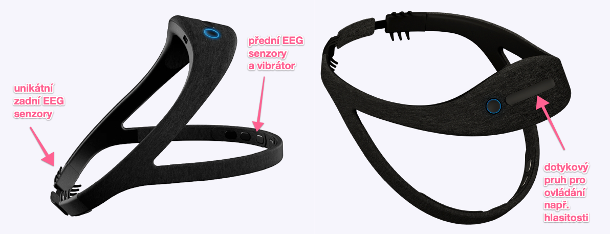- mrzí mě nepozornost, s níž tvůrci ignorovali vliv modrého světla na spánek (přestože na tuto problematiku v koučinku upozorňují) – sama aplikace svítí do noci bílou a modrou barvou, jako by se nechumelilo (a ani na to neupozorní); a co víc: LEDka na čelence bliká bíle a svítí modře, takže ve chvíli, kdy jdete spát, vystaví vás zařízení na prohloubení spánku modrému světlu s frekvencí kulminující na 460 nm (nechal jsem si to přeměřit u Hynka Medřického) – toto mi připadá škoda, móda modrých LED musí skončit a už si s tvůrci píšu – nevyloučili sjednání nápravy updatem firmwaru.